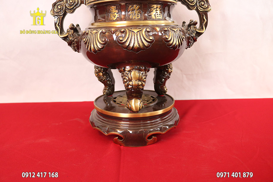 Phần chân của đỉnh được đúc liền với bụng tạo thành thế chân vạc vô cùng vững trãi và chắc chắn cho đỉnh đồng